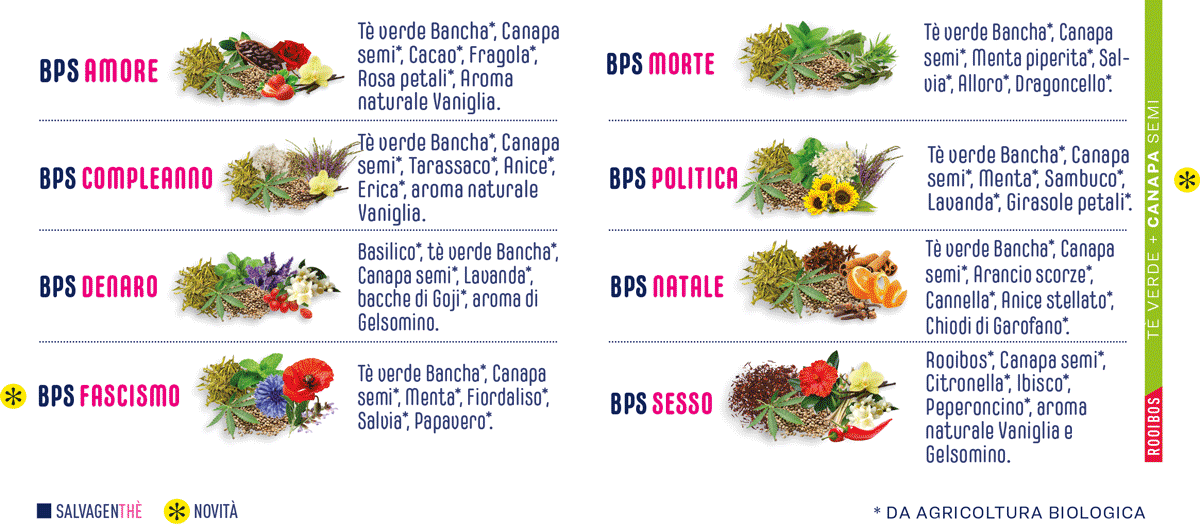 Da un punto di vista prettamente legale, il legislatore europeo distingue canapa e cannabis a seconda della quantità di THC presente in termini percentuali: minore di 0,2% si parla di canapa, altrimenti di marijuana. Ovviamente, poi, gli e!etti sono diversi. La canapa è più ricca di CBD e non è psicoattiva, anzi viene tenuta in considerazione per il suo potenziale come pianta medicinale, dato che il CBD è una delle sostanze presenti nella canapa delle quali l’utilizzatore potrebbe beneficiare. Tutti i blend sono biologici, inediti e formulati ad hoc per ogni titolo, così che il racconto presegua col sapore, ma soprattuto sono buonissimi. I filtri monodose vengono confezionati a mano, uno a uno, da una piccola azienda agricola piemontese. La miscelazione è ottenuta attraverso una selezione di ingredienti biologici di alta qualità. Ogni filtro Narratè® contiene 2g di miscela, perfetto per la preparazione di un’eccellente tazza di infuso.