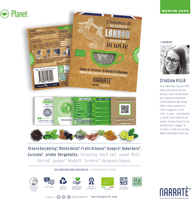 Un racconto inedito di circa 5 min. di lettura, equivalenti al tempo necessario all’infusione. Scritto da Cristina Villa per cogliere e restituire con semplicità il ‘cuore’, il carattere, l’anima della capitale inglese. In pratica l’essenza di Londra e dei suoi abitanti. Un vero e proprio Tè Souvenir. In due lingue (ITA/ENG) - 1a edizione maggio 2024